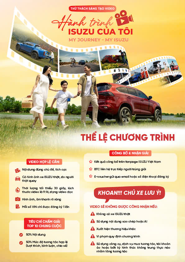 🚗✨ THỬ THÁCH SÁNG TẠO VIDEO “HÀNH TRÌNH ISUZU CỦA TÔI” – CHÍNH THỨC MỞ CỔNG THAM GIA! ✨🚗